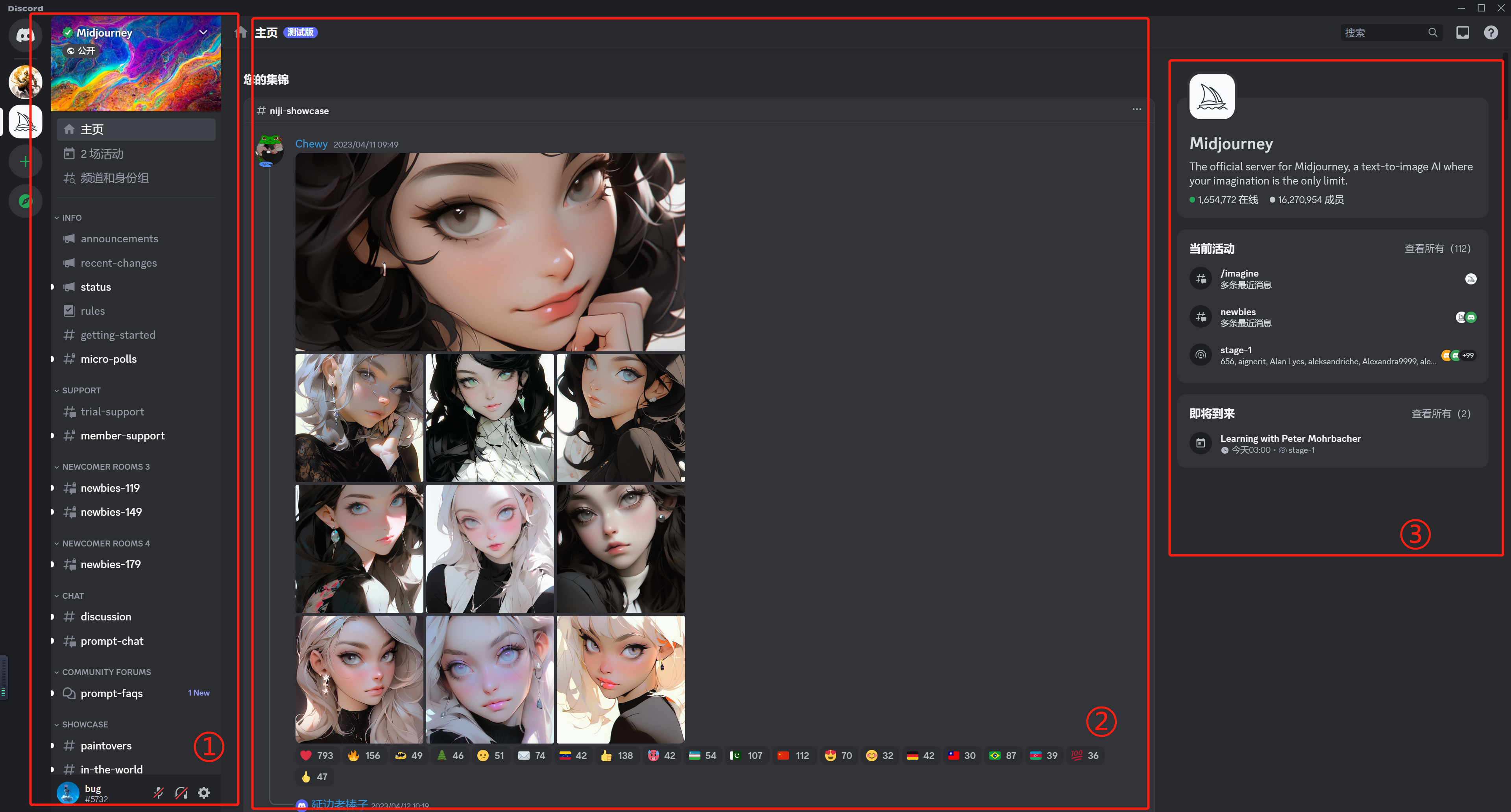 了解了以上关于 Discord 的概念,我们可以来研究下 Midjourney 服务器的构成了。